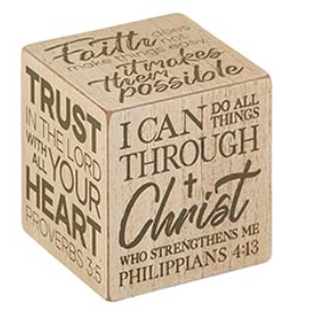 This Scripture cube features a different verse or quote on each side. Ideal for desktops, bookshelves, as a paper weight and more. A unique and inspiring gift for anyone!
